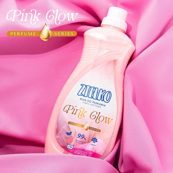 Looduslik pesupehmendaja sooja ja kreemja sandlipuu lõhnaga. Zielko sandlipuu lõhnaline pesupehmendaja Pink Glow annab riietele siidise pehmuse, kaitseb kiude kahjustuste eest ja tagab kauakestva värskuse.